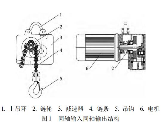常見的環鏈電動葫蘆結構主要有下面幾種: 同軸輸入同軸輸出結構、C形結構布置、水平 C 形結構,今天我們就要針對這幾款結構進行詳細的介紹: